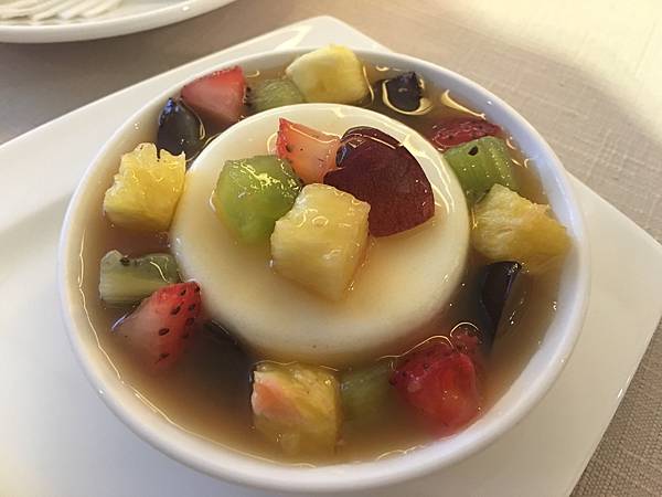 在奶酪上加入水果及倒入晶透雪亮飲後,就完成了好吃的點心!