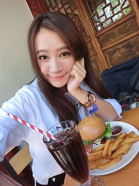 卉俞點的是招牌漢堡,配料就是起司 生菜 番茄 牛肉 培根等等