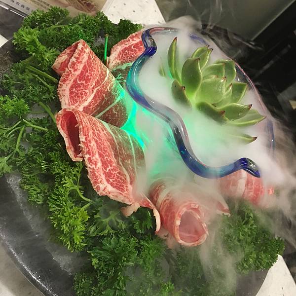 而且擺盤比起大陸更加用心和精緻,有乾冰特效看了就很厲害,照片是牛五花(必點)