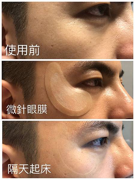 J先生眼周只有敷一次喔!使用一副眼貼的效果!
